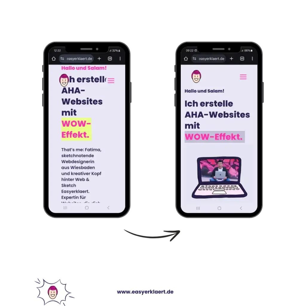 # Öffne deine Website auf dem Handy: Ist alles gut lesbar? Funktionieren die Buttons?