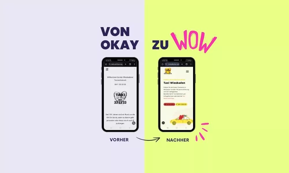👉 Verlinkung zum Portfolio-Beitrag: Wenn du mehr über diesen Relaunch erfahren möchtest, schau dir unseren Portfolio-Beitrag über den Taxi Wiesbaden Relaunch an. Hier erfährst du, wie wir eine veraltete Seite in einen modernen Online-Auftritt verwandelt haben – mit Strategie und visuellem Storytelling.